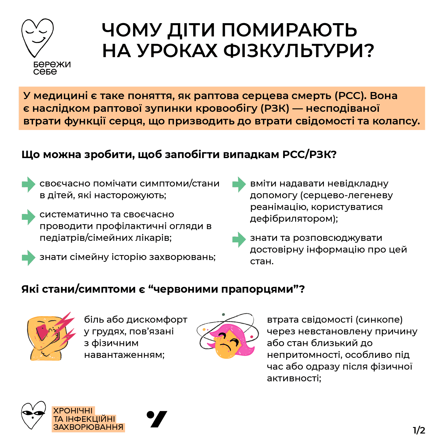 Дослідження показують, що в 30-50% випадків до РСС діти мали певні підозрілі симптоми зі сторони серця. Тому важливо знати про ці ознаки та розповідати при них дітям.