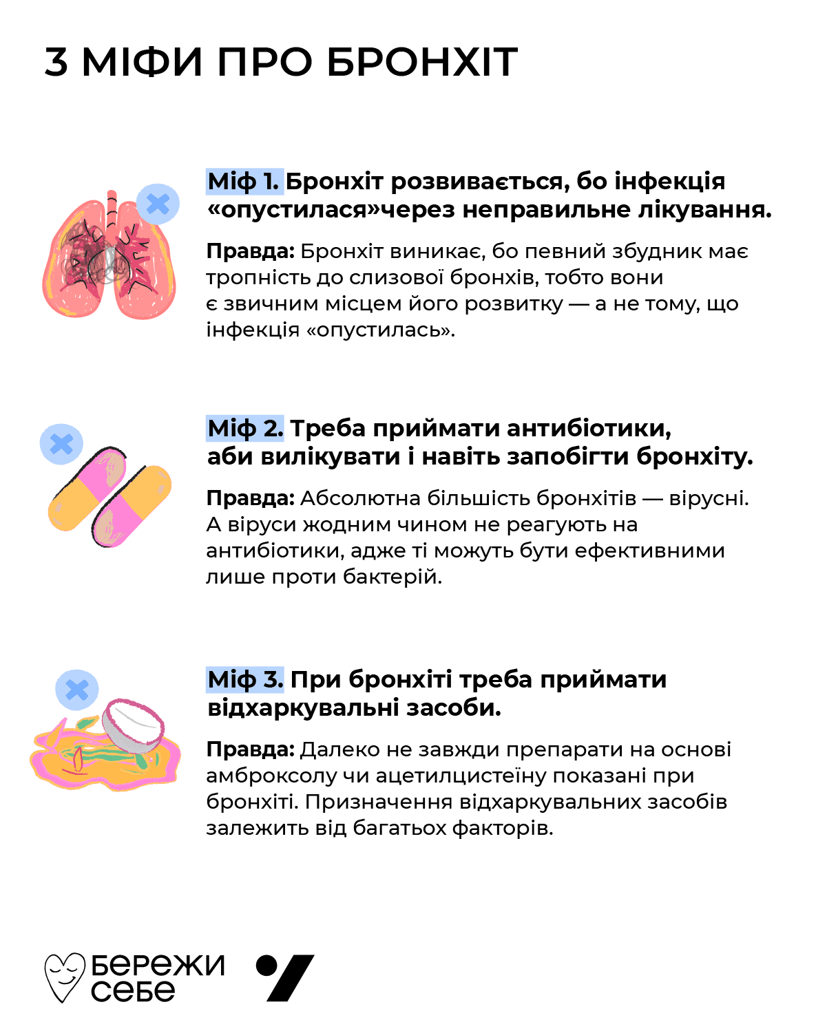Міф 2. Треба приймати антибіотики, аби вилікувати і навіть запобігти бронхіту.