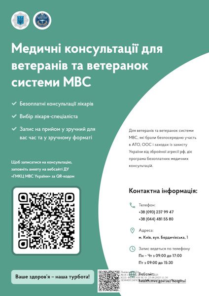 • Медичні консультації для ветеранів та ветеранок системи МВС