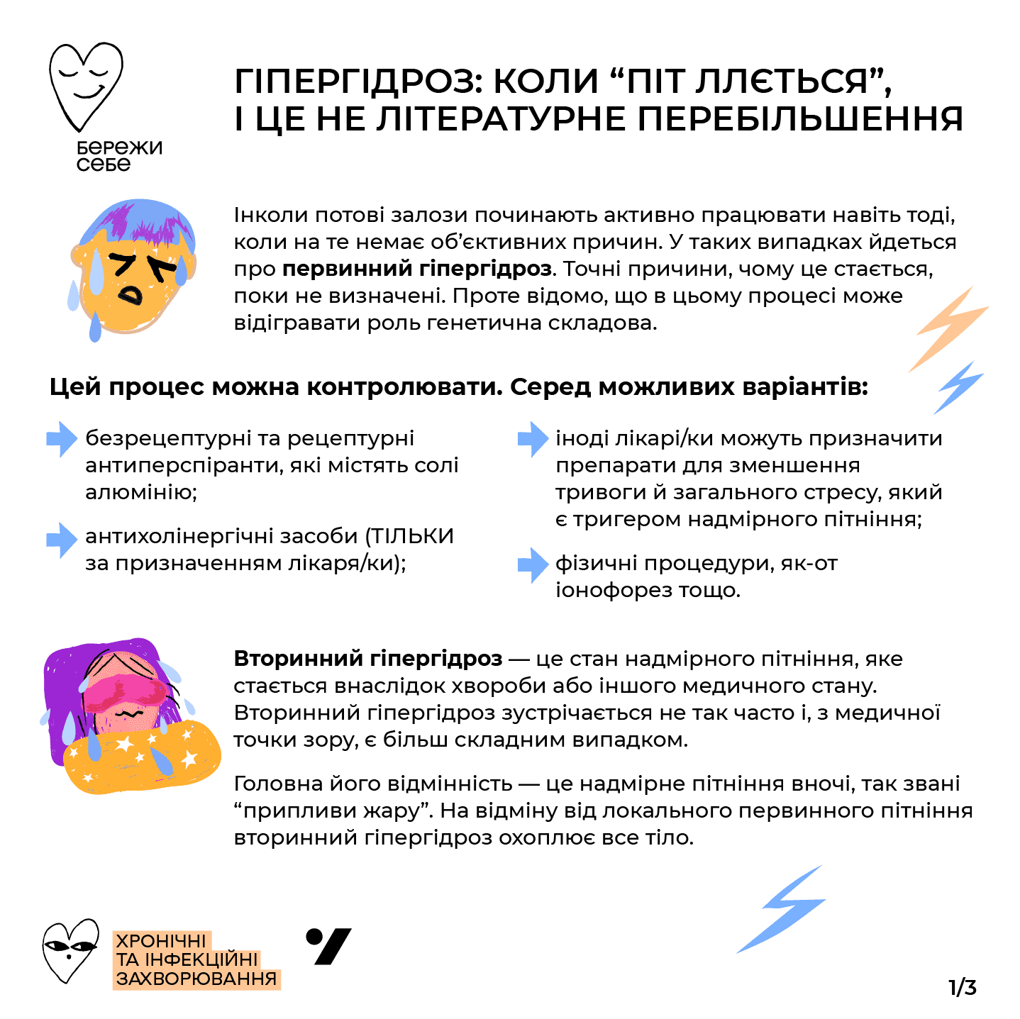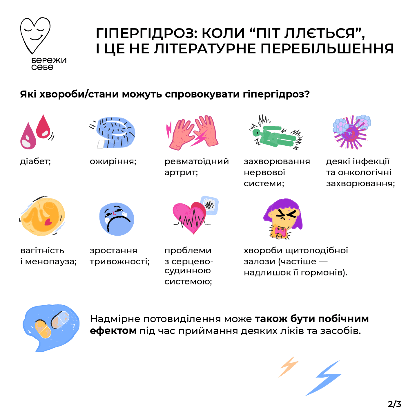 → іноді лікарі/ки можуть призначити препарати для зменшення тривоги й загального стресу, який є тригером надмірного пітніння;